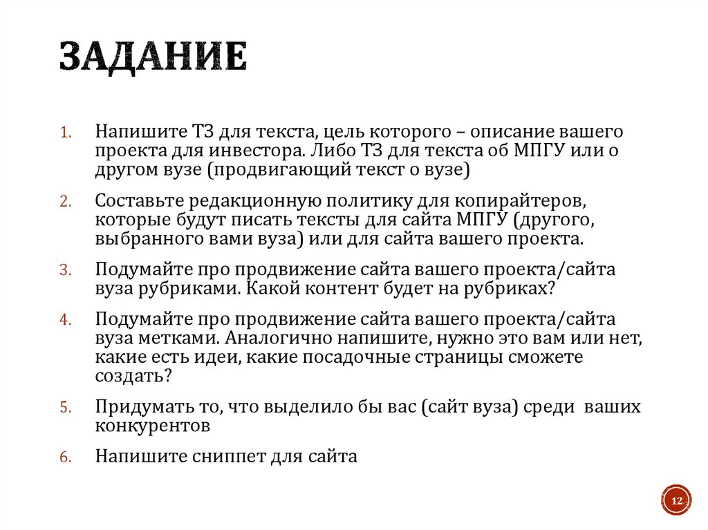 1.Напишите ТЗ для текста, цель которого – описание вашего