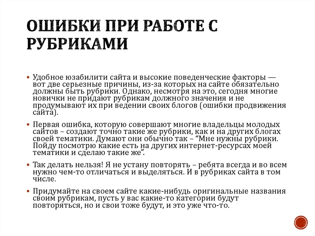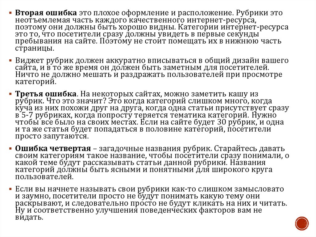 Вторая ошибка это плохое оформление и расположение. Рубрики этонеотъемлемая часть каждого качественного интернет-ресурса,