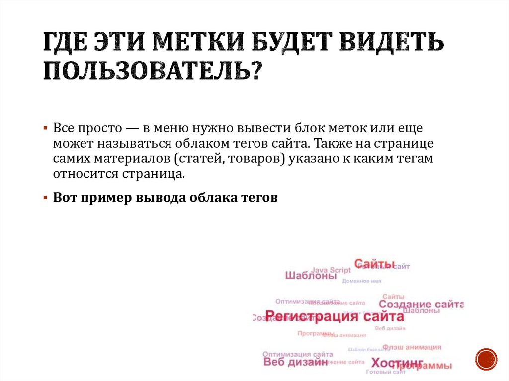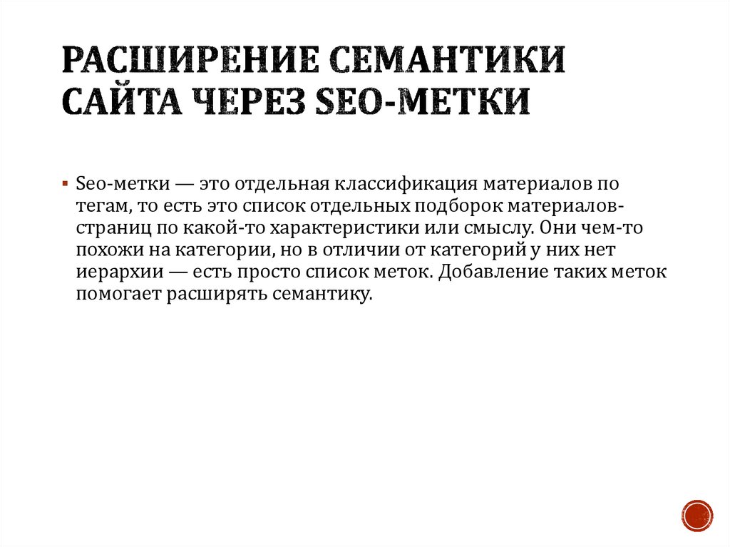 Seo-метки — это отдельная классификация материалов потегам, то есть это список отдельных подборок материаловстраниц по какой-то характеристики или смыслу. Они чем-то