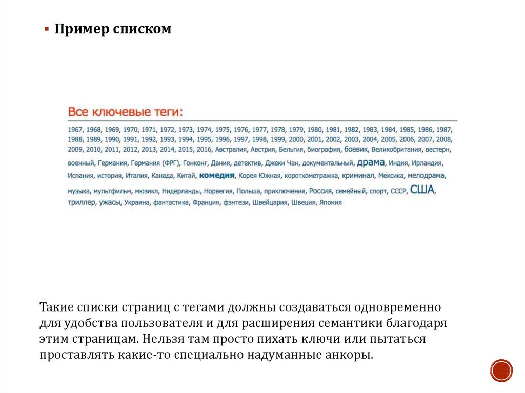 Пример спискомТакие списки страниц с тегами должны создаваться одновременно