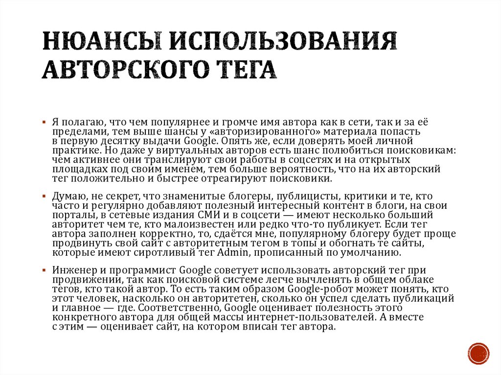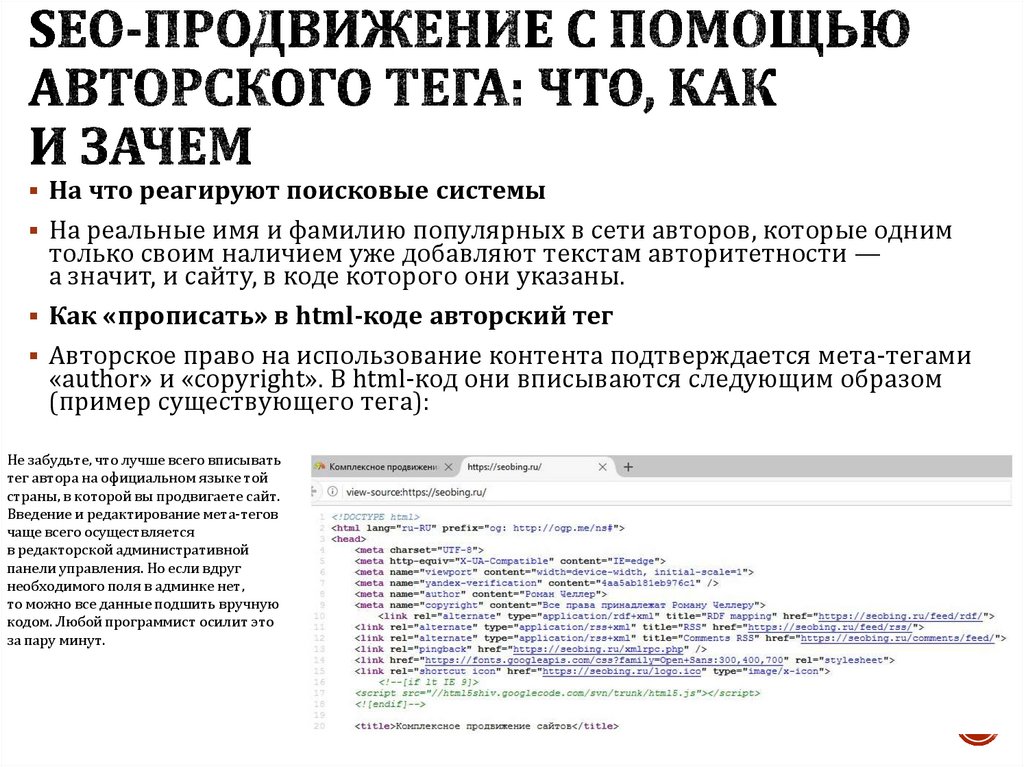 тегов, кто такой автор. То есть таким образом Google-робот может понять, кто