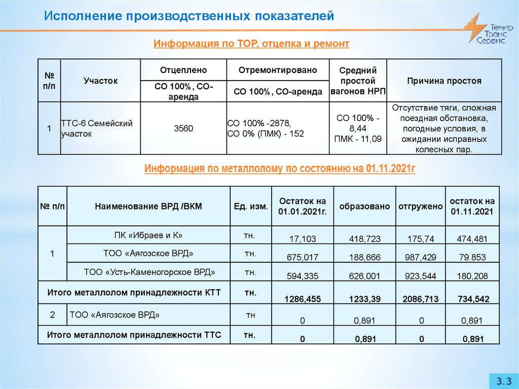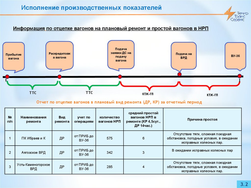 Исполнение производственных показателейИнформация по ТОР, отцепка и ремонт