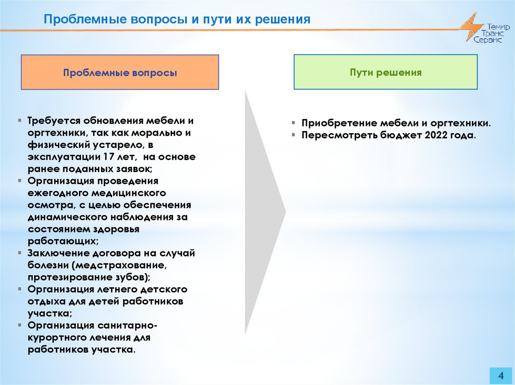 Проблемные вопросы и пути их решенияПроблемные вопросы