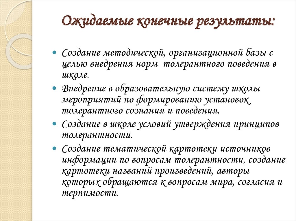 Ожидаемые конечные результаты:Создание методической, организационной базы с