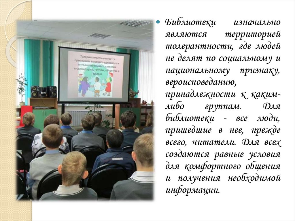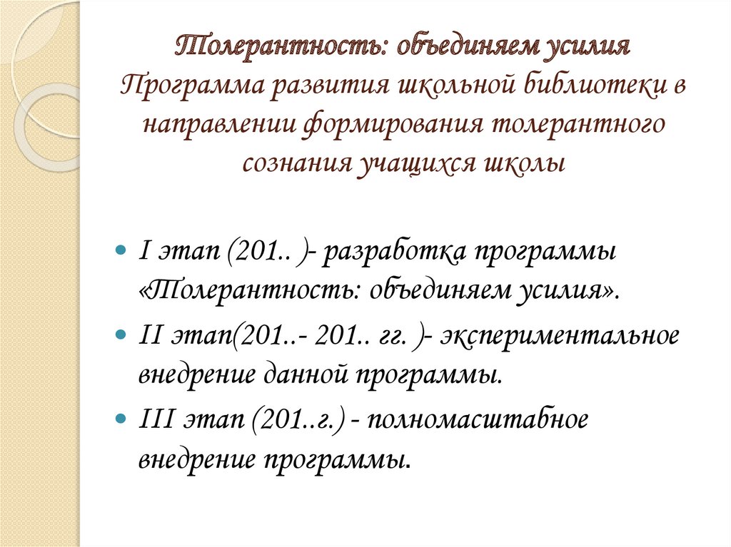 Толерантность: объединяем усилияПрограмма развития школьной библиотеки в