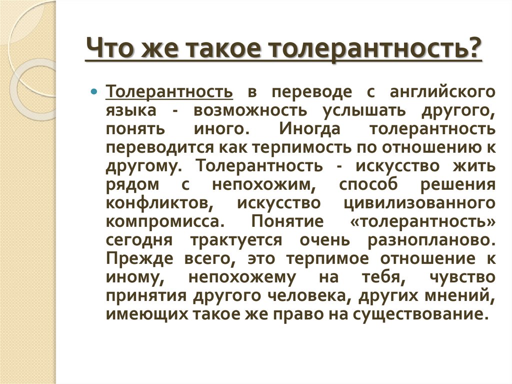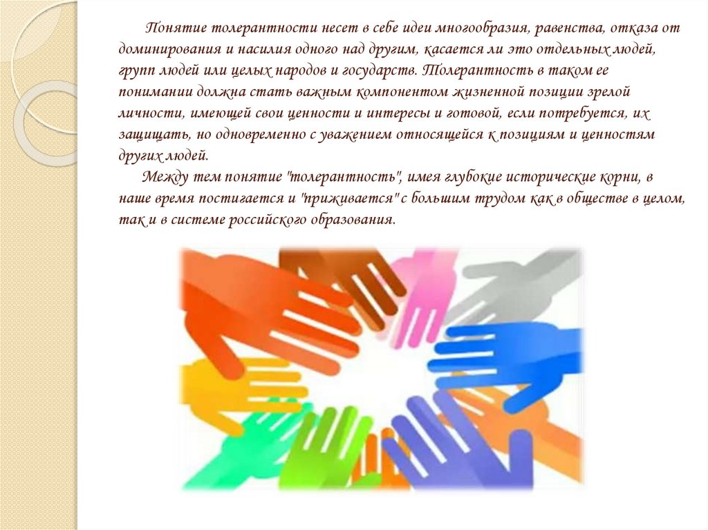 Между тем понятие "толерантность", имея глубокие исторические корни, в