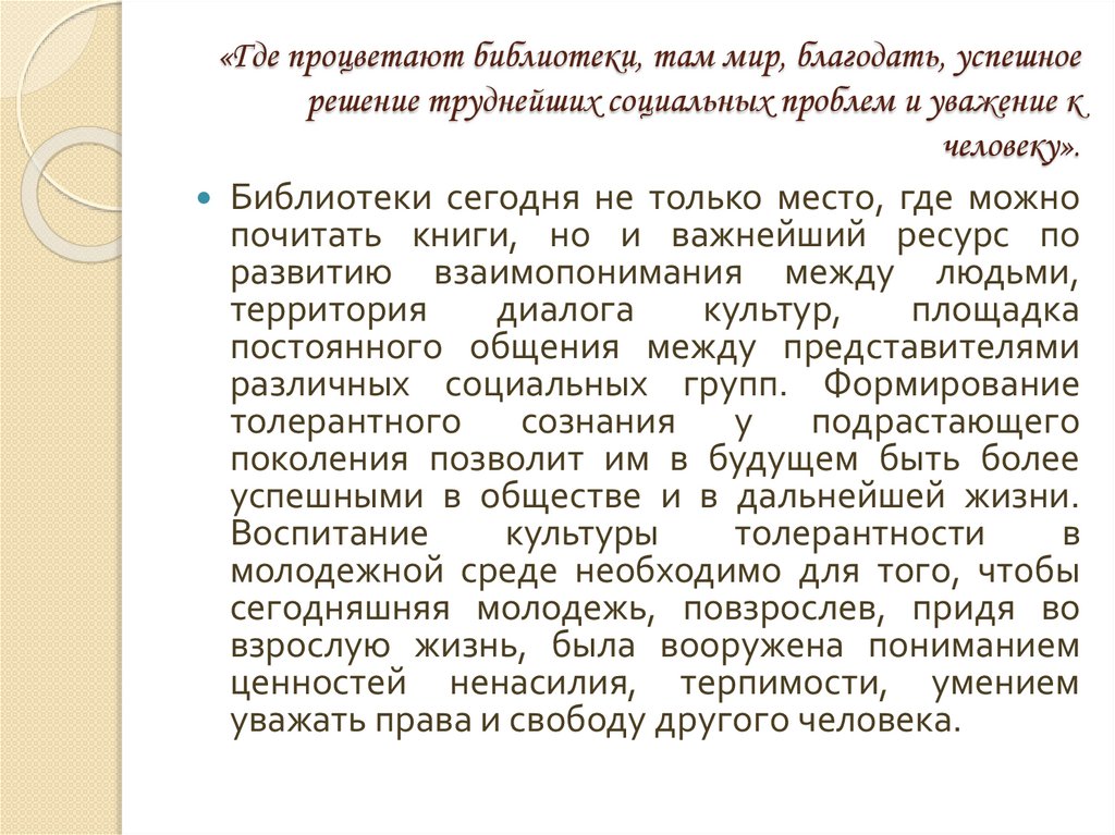 «Где процветают библиотеки, там мир, благодать, успешноерешение труднейших социальных проблем и уважение к