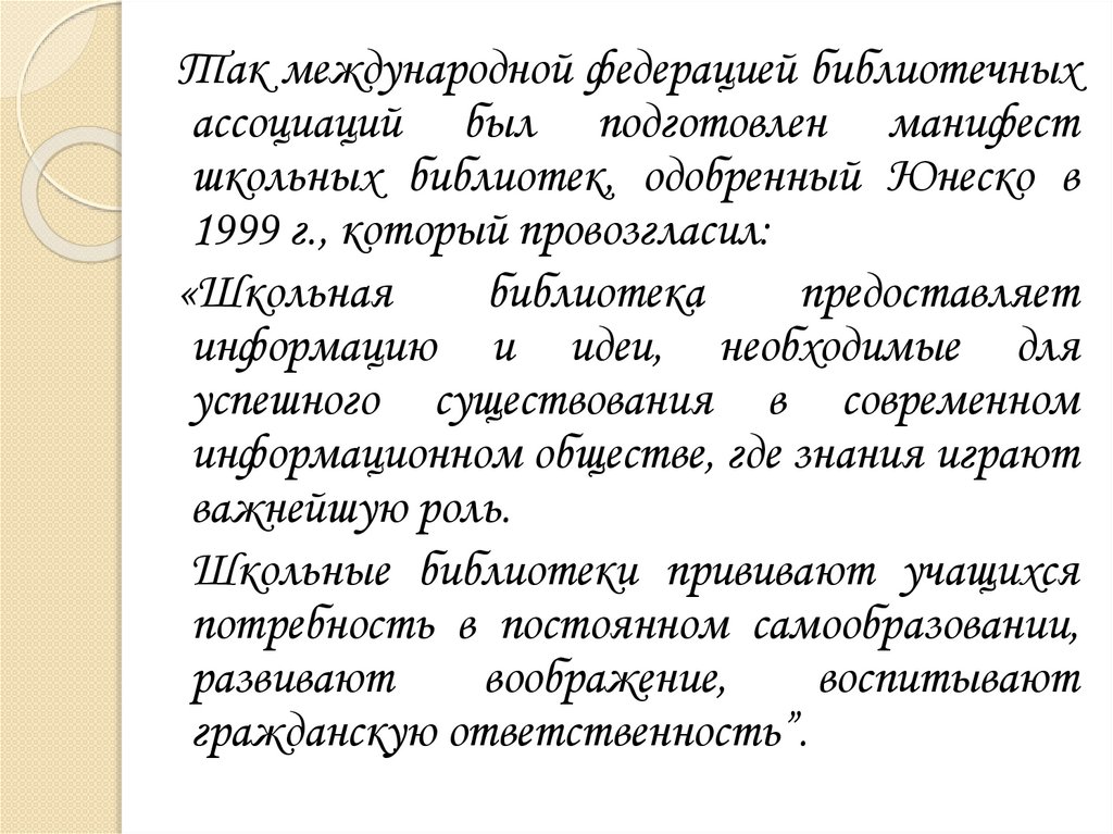 Так международной федерацией библиотечныхассоциаций был подготовлен манифест