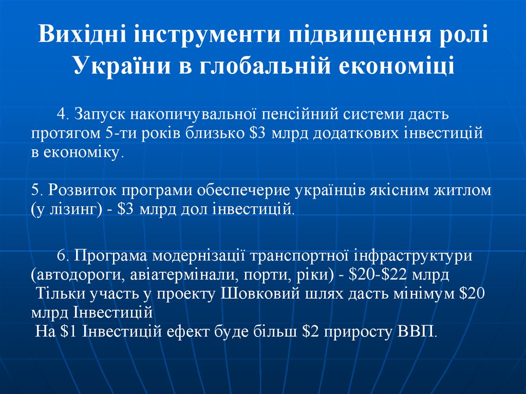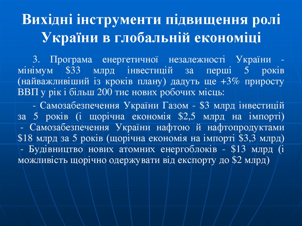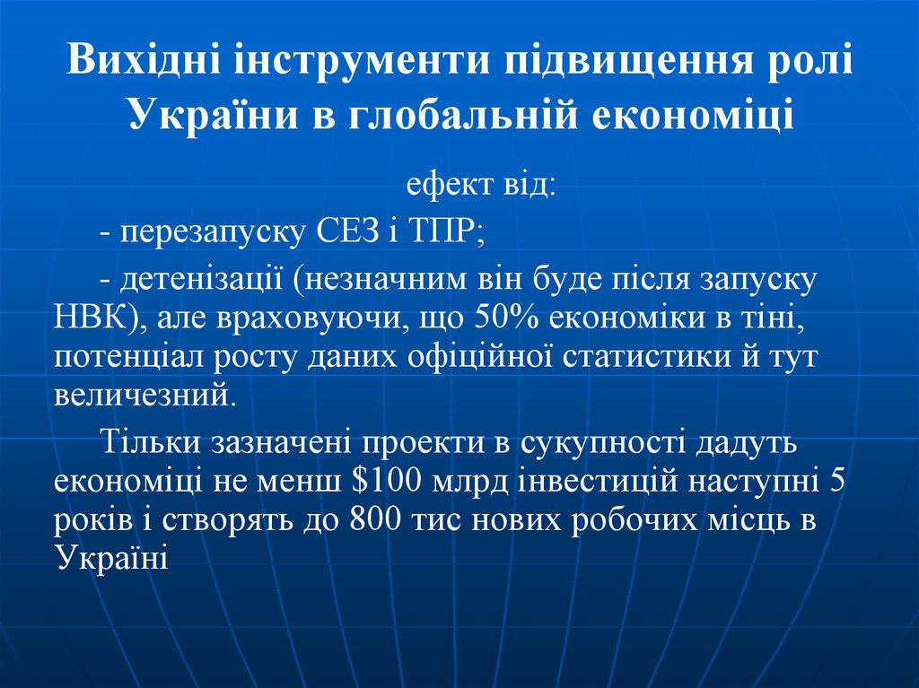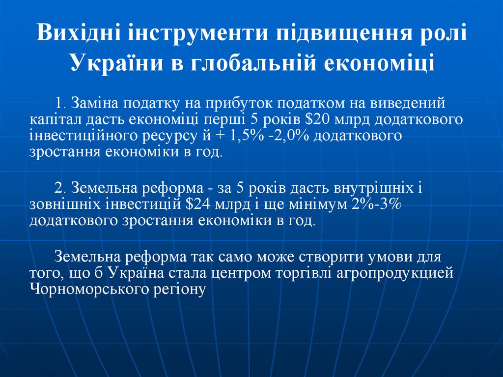 16. Вихідні інструменти підвищення ролі України в глобальній економіці