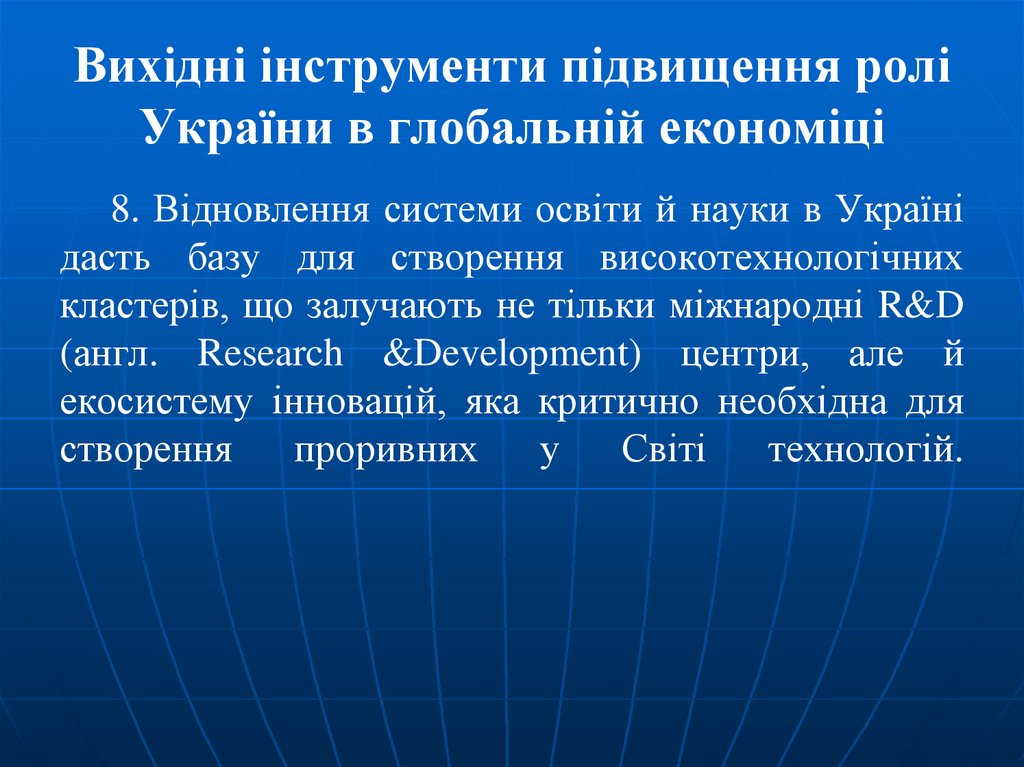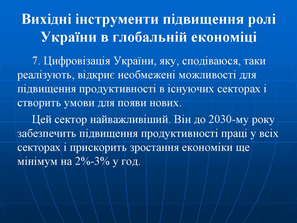 19. Вихідні інструменти підвищення ролі України в глобальній економіці