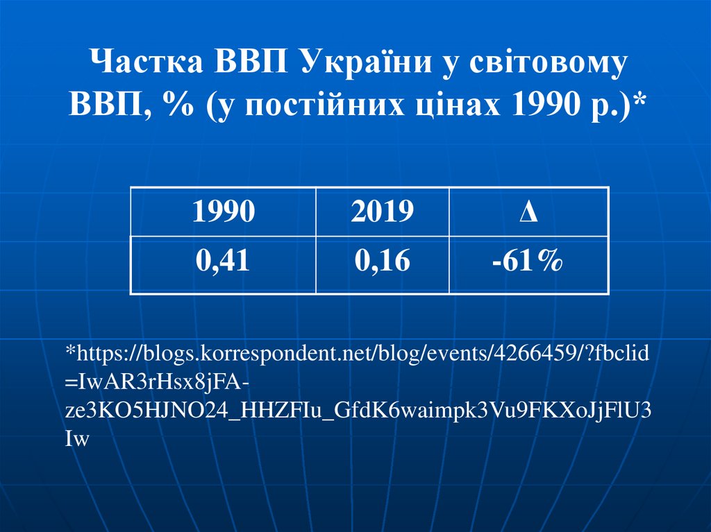 4. Частка ВВП України у світовому ВВП, % (у постійних цінах 1990 р.)*