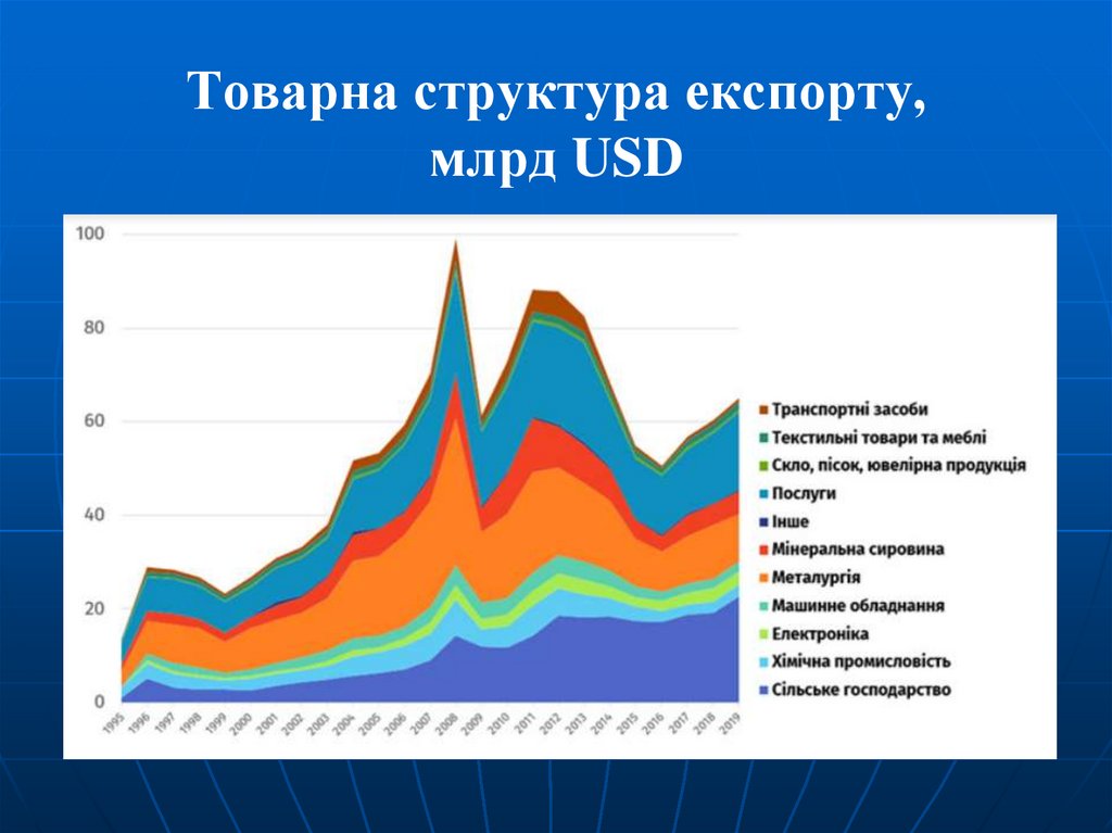 Експорт України - 2,9 млрд. дол. 3% світового ринку.