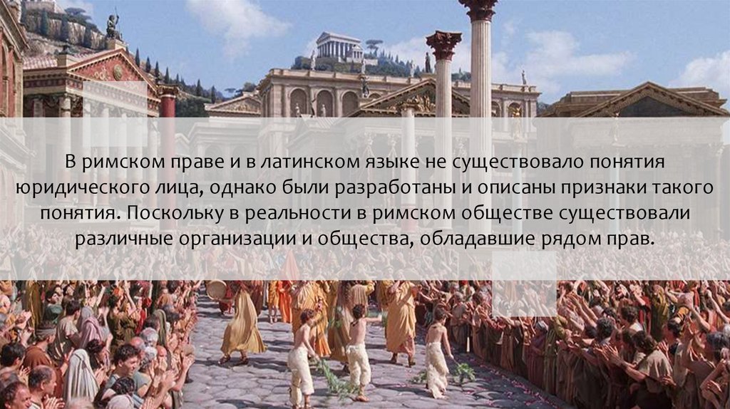 В римском праве и в латинском языке не существовало понятияюридического лица, однако были разработаны и описаны признаки такого