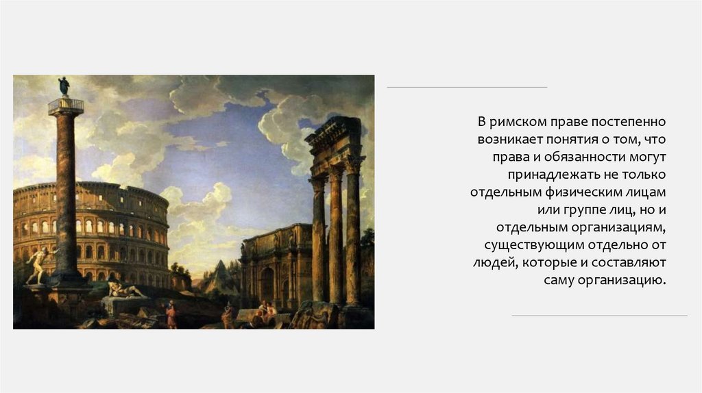 В римском праве постепенновозникает понятия о том, что