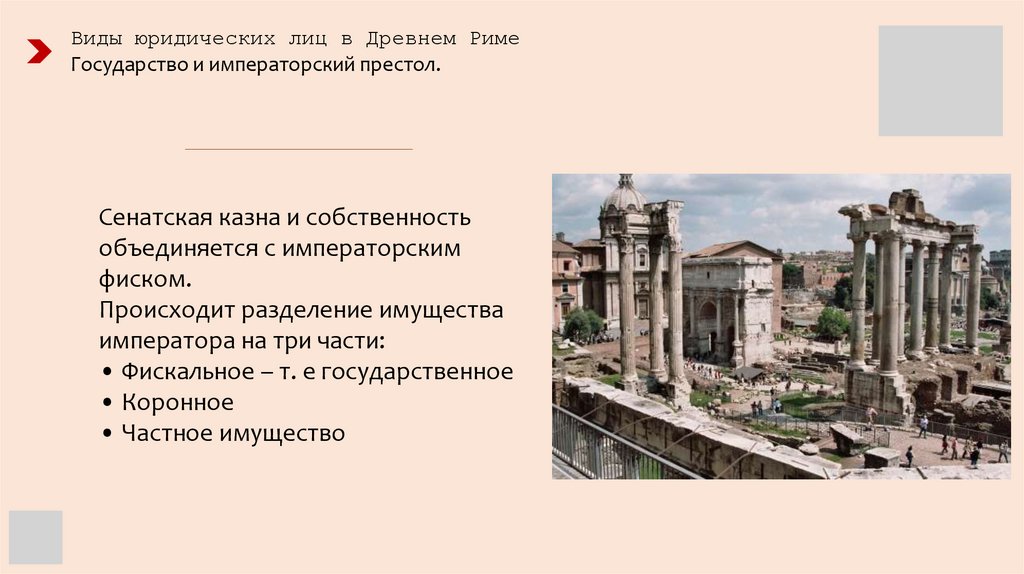 Виды юридических лиц в Древнем РимеГосударство и императорский престол.
