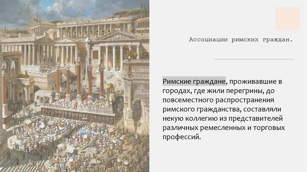 Ассоциации римских граждан.Римские граждане, проживавшие в