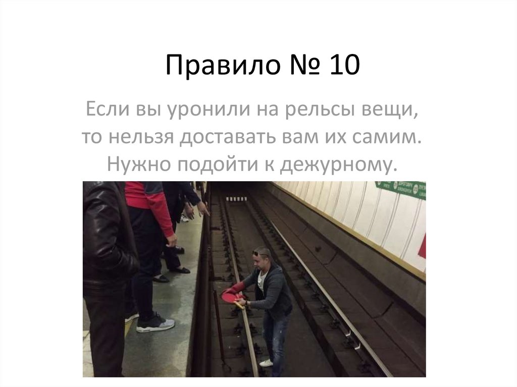 Правило № 10Если вы уронили на рельсы вещи,