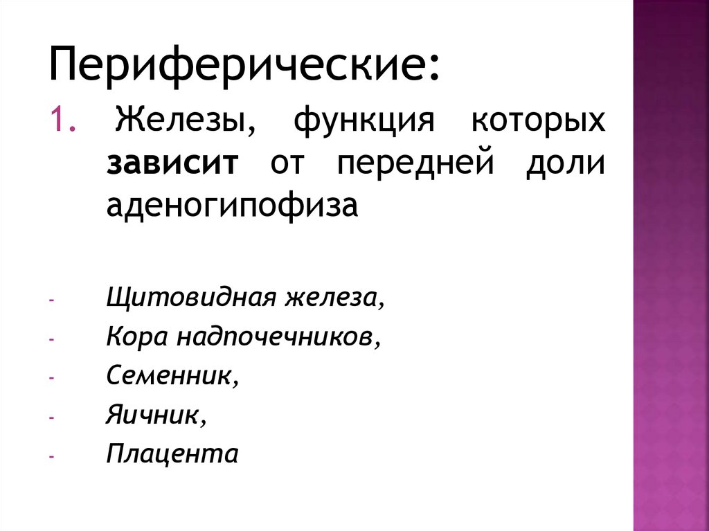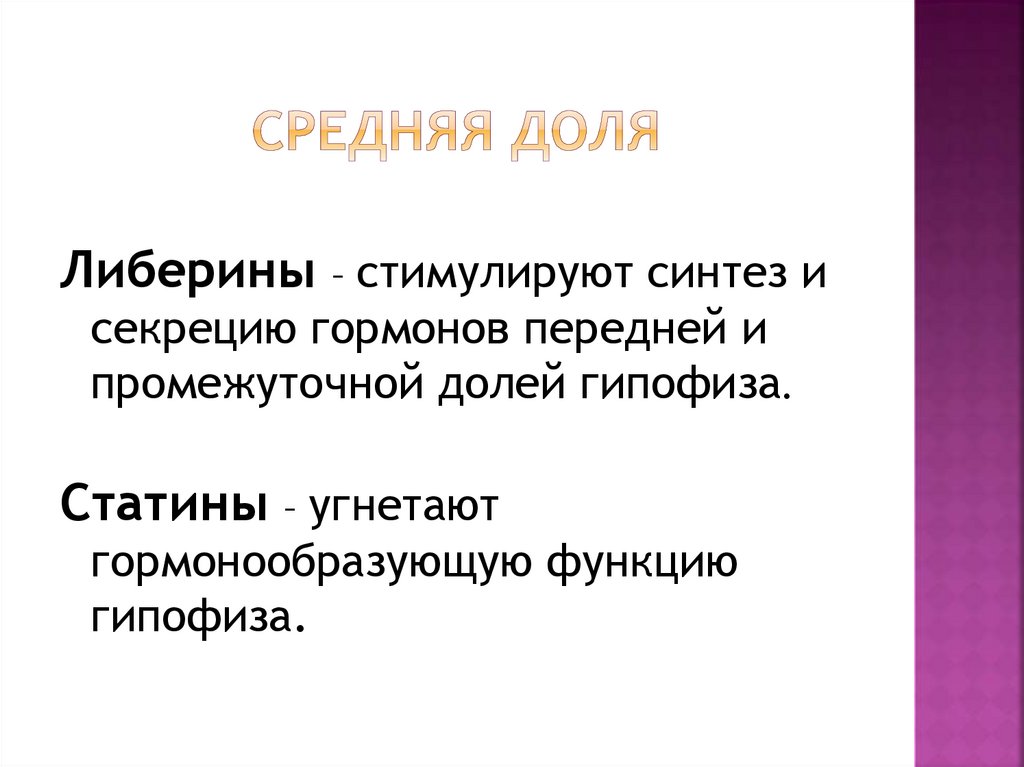 Либерины – стимулируют синтез исекрецию гормонов передней и