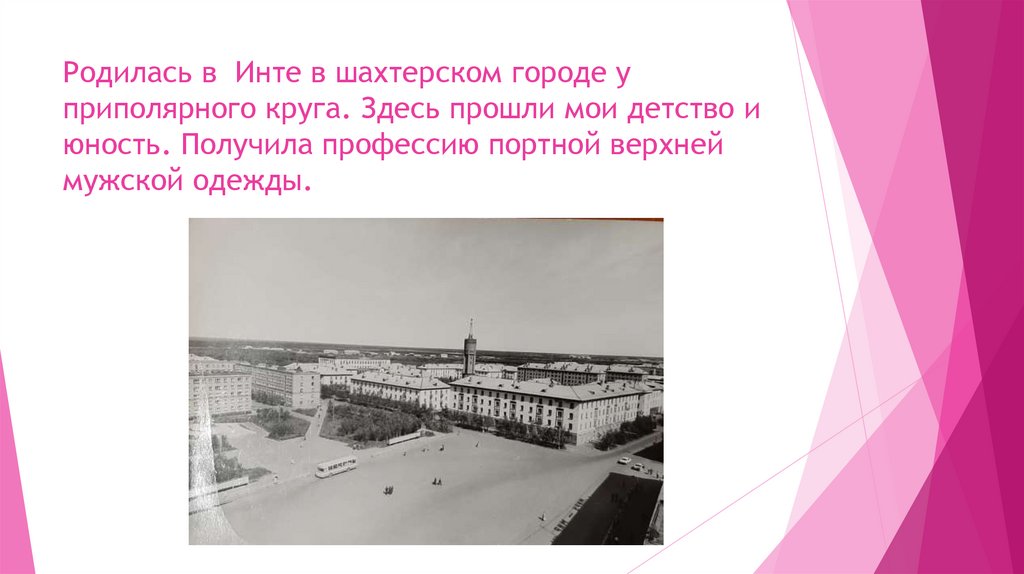 Родилась в Инте в шахтерском городе уприполярного круга. Здесь прошли мои детство и