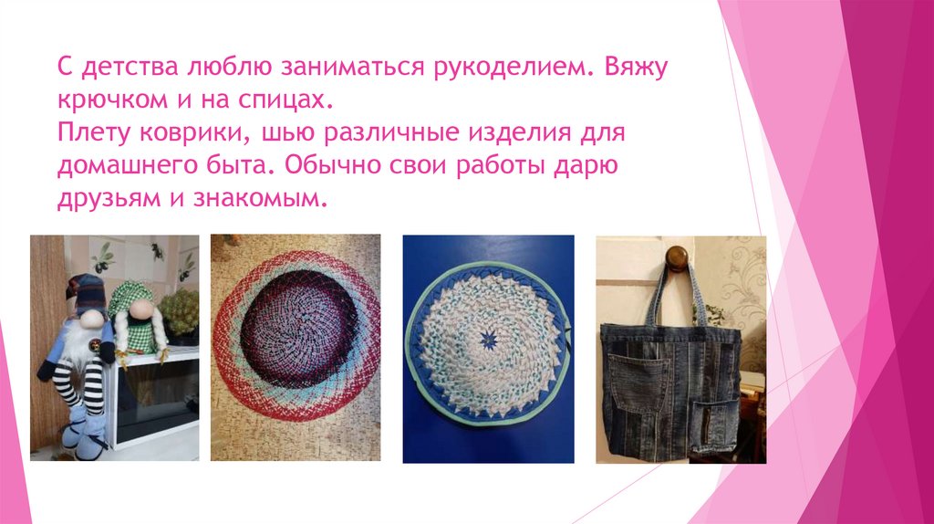 С детства люблю заниматься рукоделием. Вяжукрючком и на спицах.