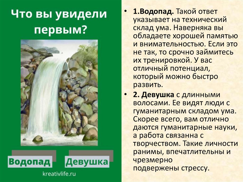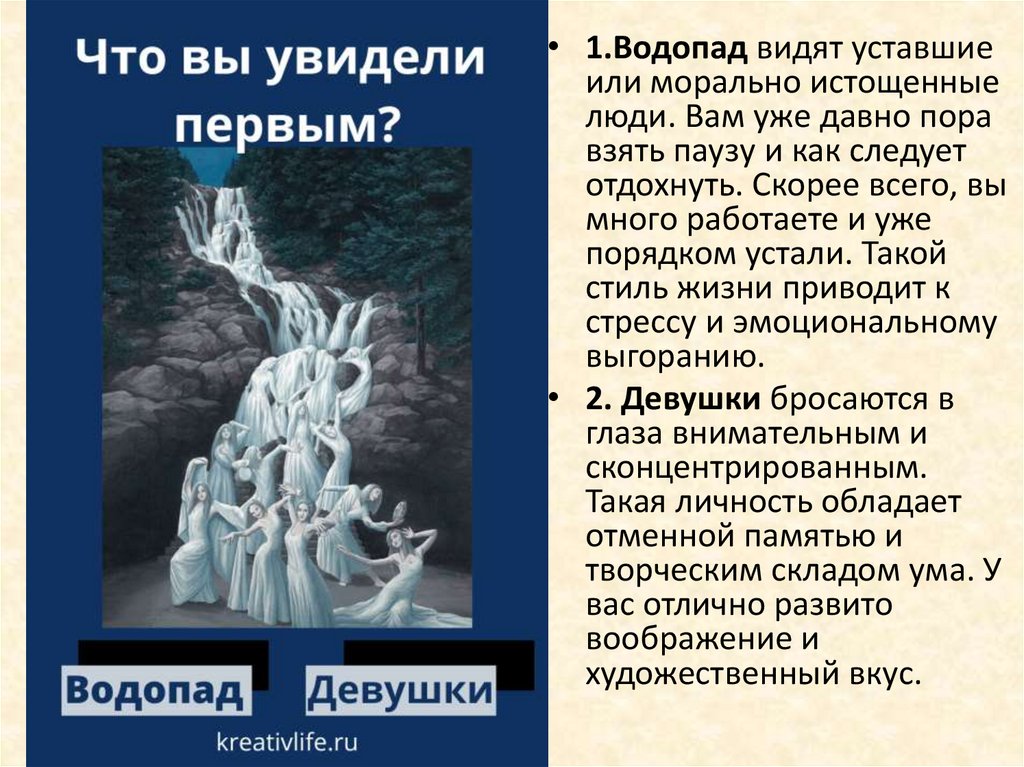 • 1.Водопад видят уставшиеили морально истощенные