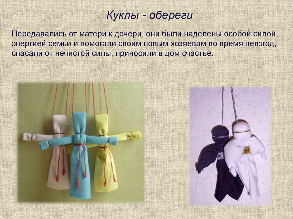 Куклы - оберегиПередавались от матери к дочери, они были наделены особой силой,