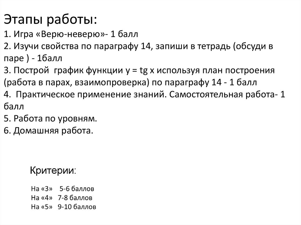 3. Построй график функции у = tg х используя план построения