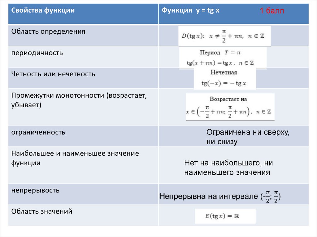 4. Функция у = tg х, свойства и график