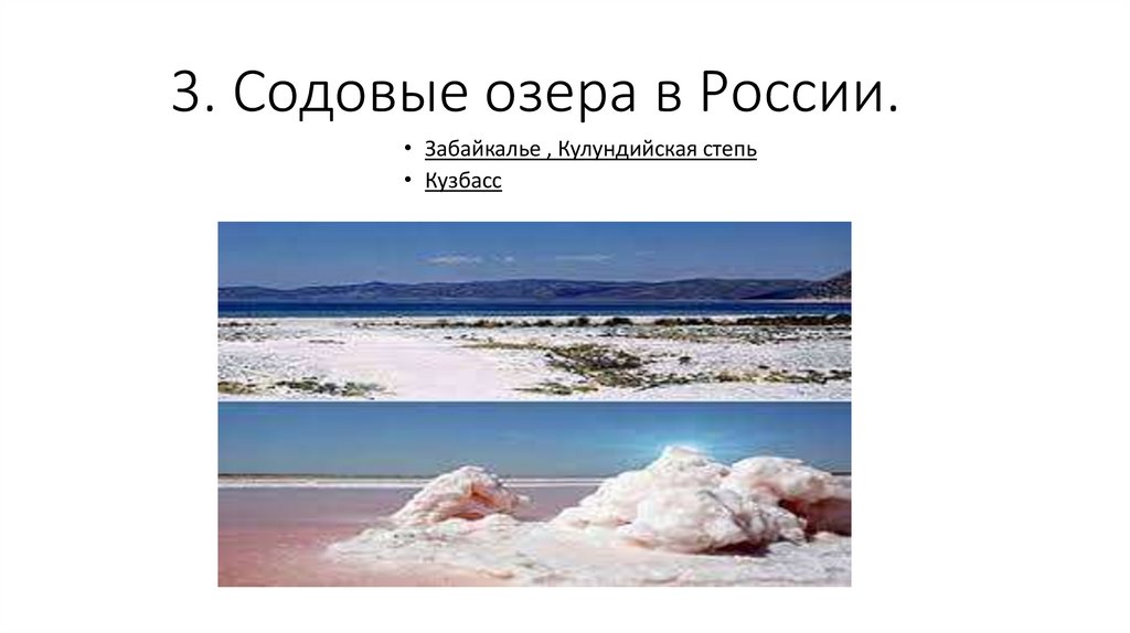 3. Содовые озера в России.• Забайкалье , Кулундийская степь