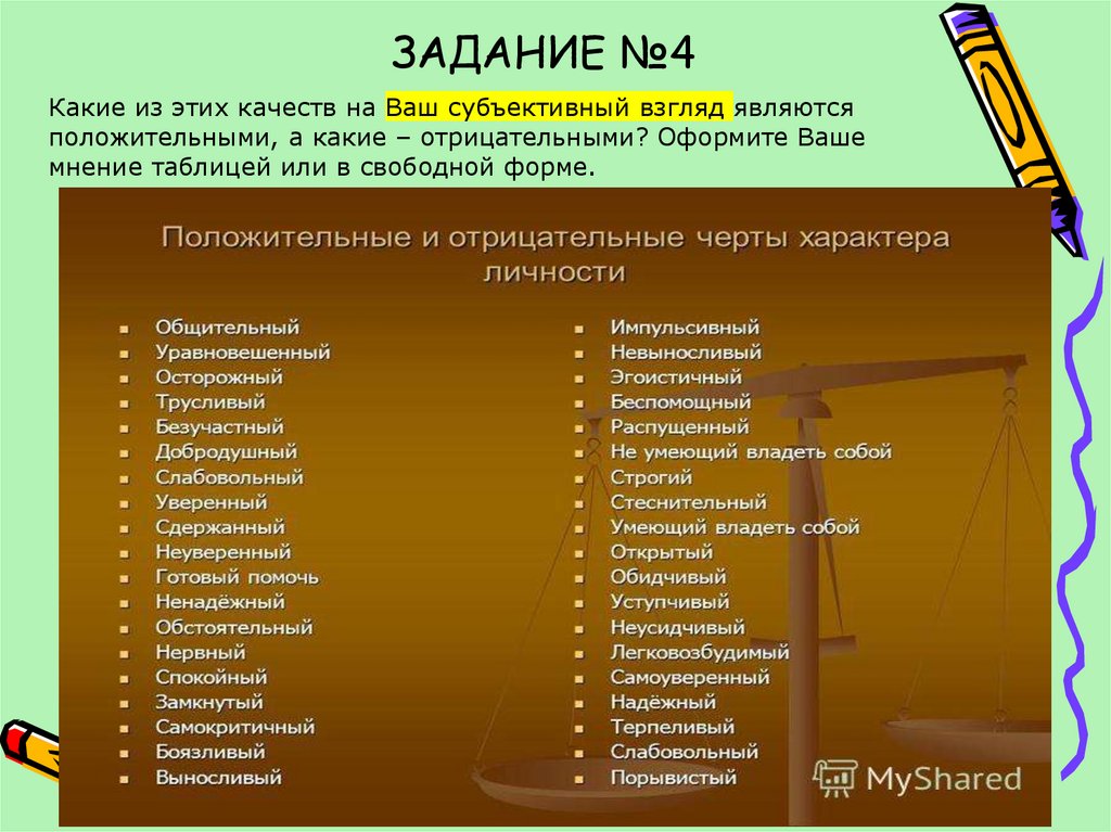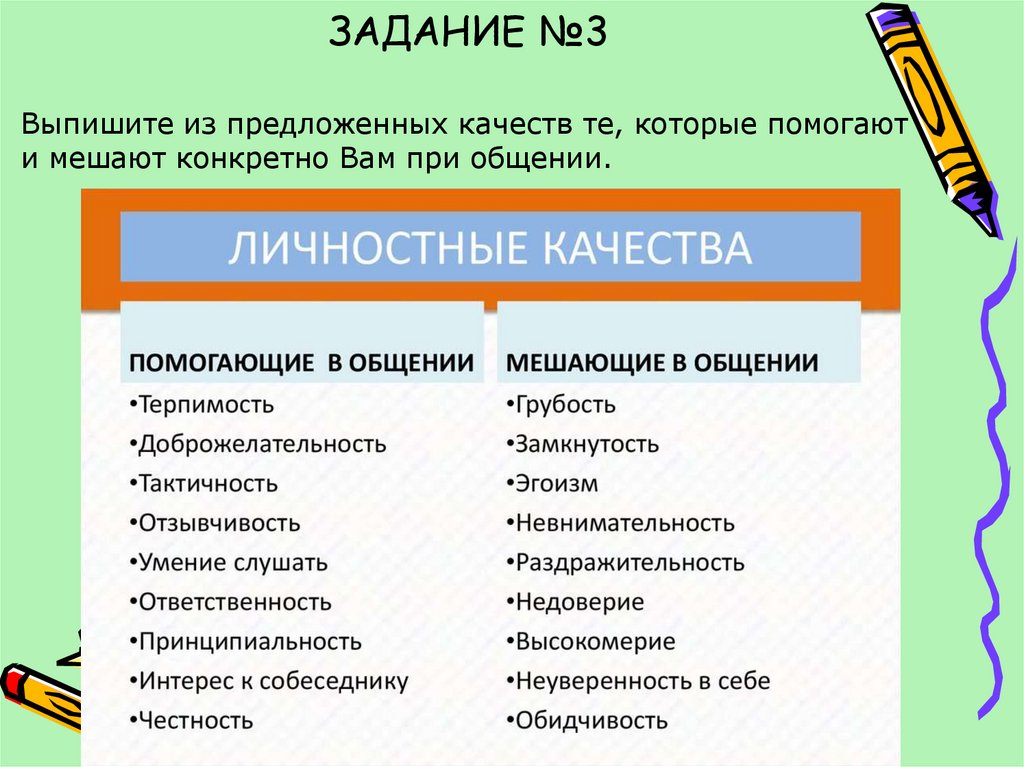 ЗАДАНИЕ №3Выпишите из предложенных качеств те, которые помогают