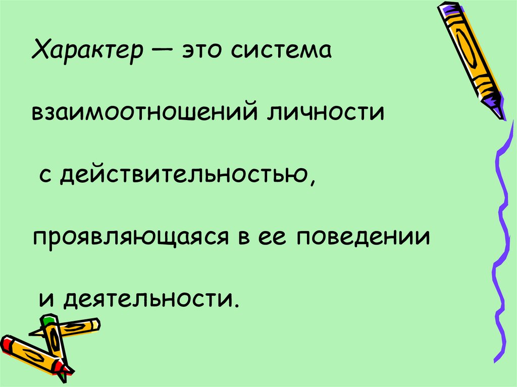 Характер — это системавзаимоотношений личности