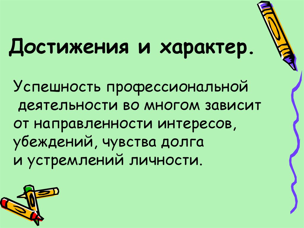 Достижения и характер.Успешность профессиональной