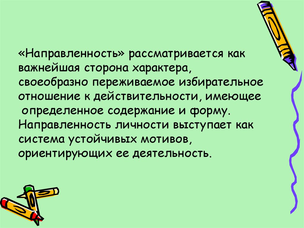 «Направленность» рассматривается какважнейшая сторона характера,