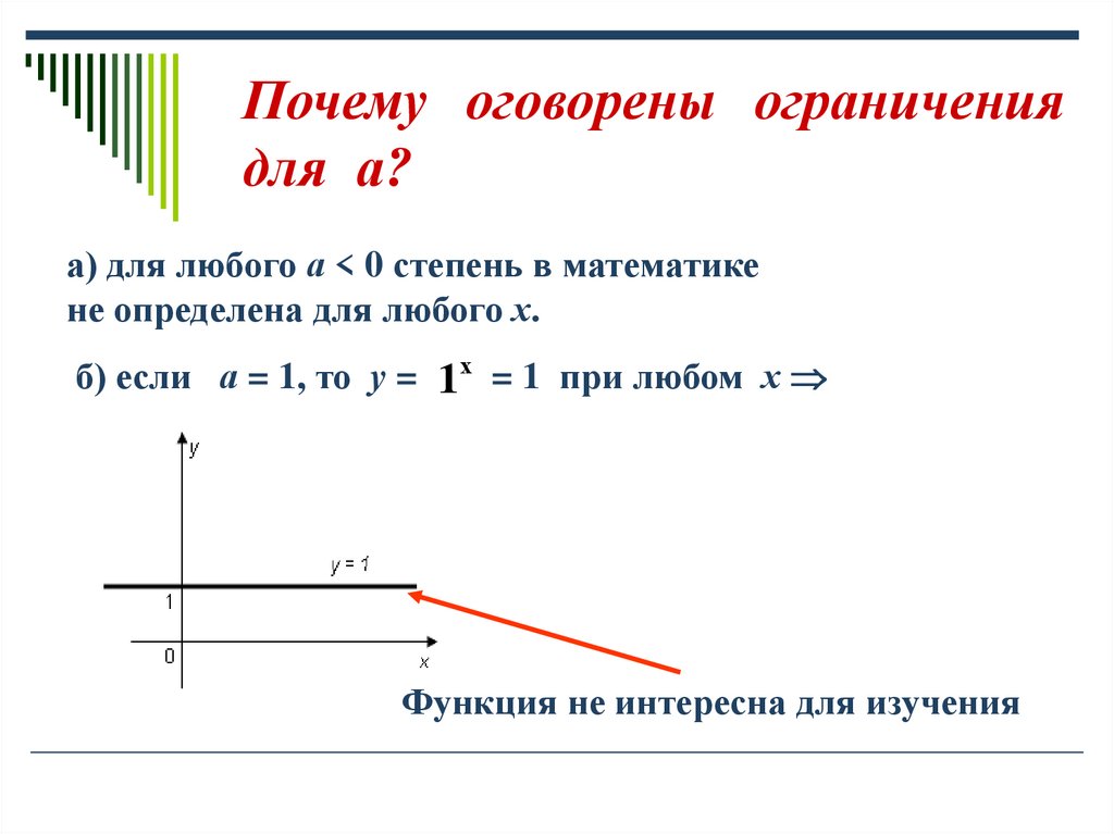 б) если а = 1, то у = 1х = 1 при любом х