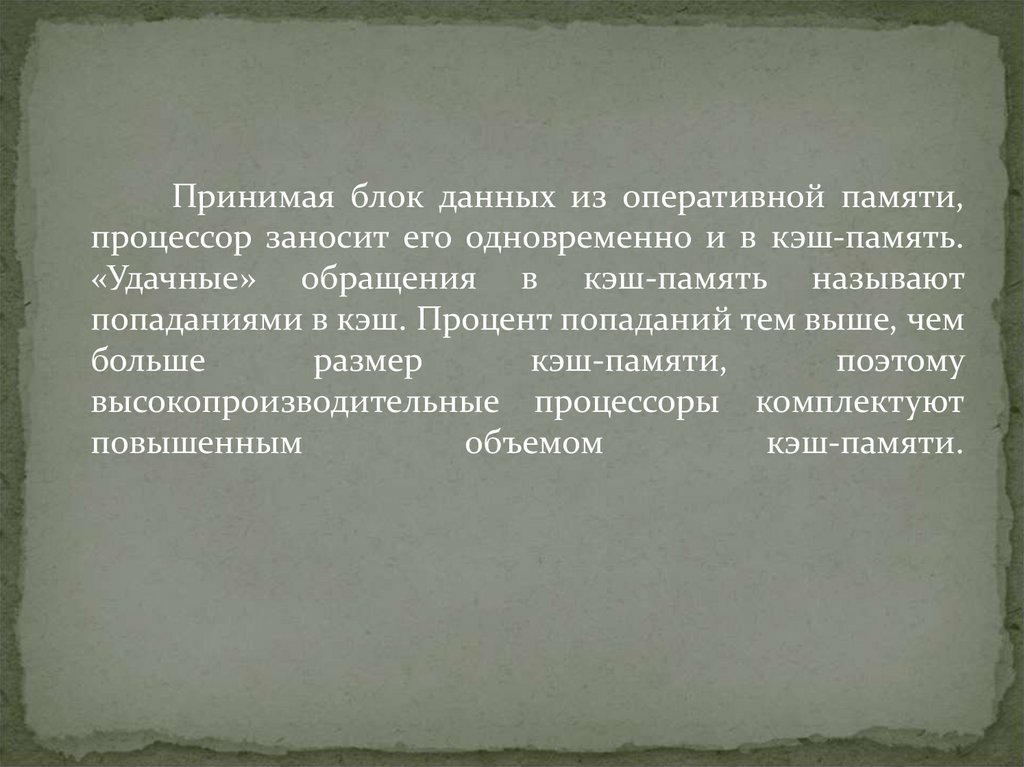 попаданиями в кэш. Процент попаданий тем выше, чем
