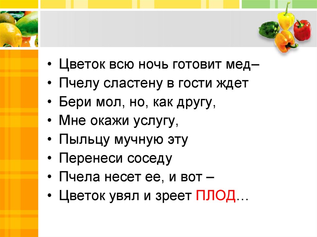 Цветок увял и зреет ПЛОД…