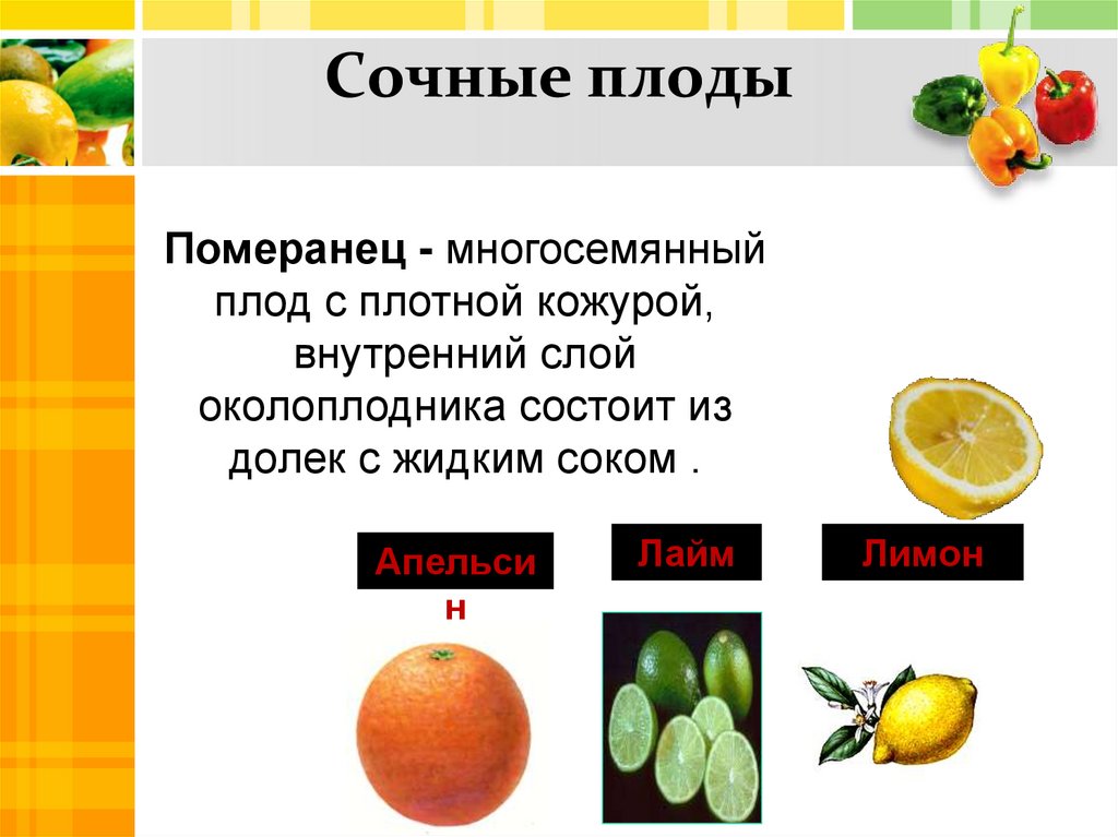 Сочные плодыПомеранец - многосемянный