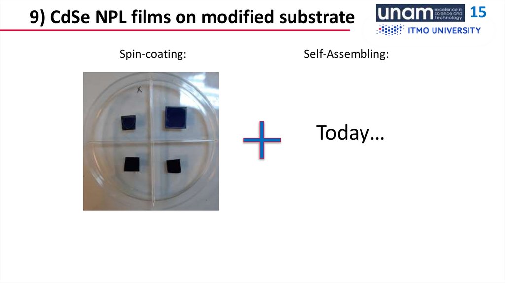 9) Creation of CdSe NPL films modified substrates
