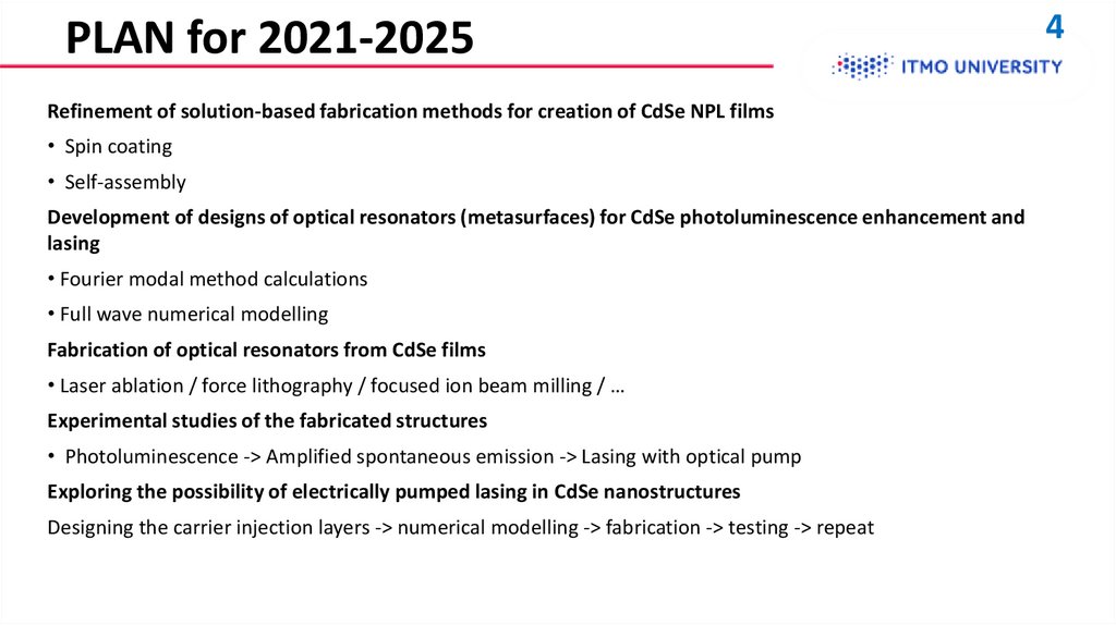 (full research cycle including numerical modelling, fabrication and postprocessing of CdSe NPL films, and measurement of emission characteristics)