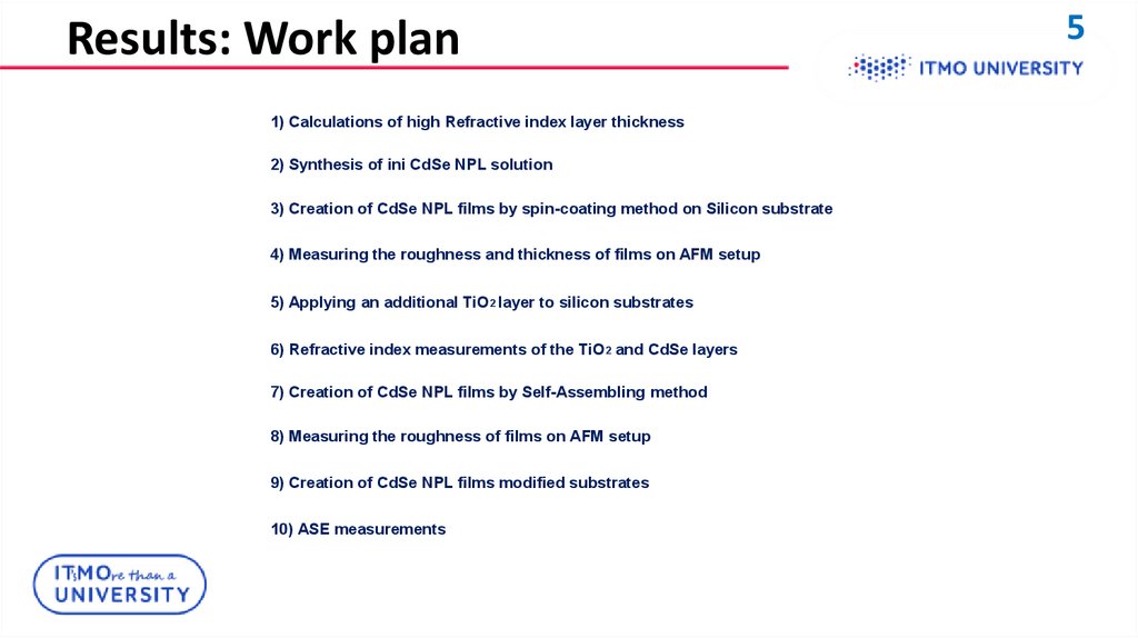 Results: Work plan1) Calculations of high Refractive index layer thickness