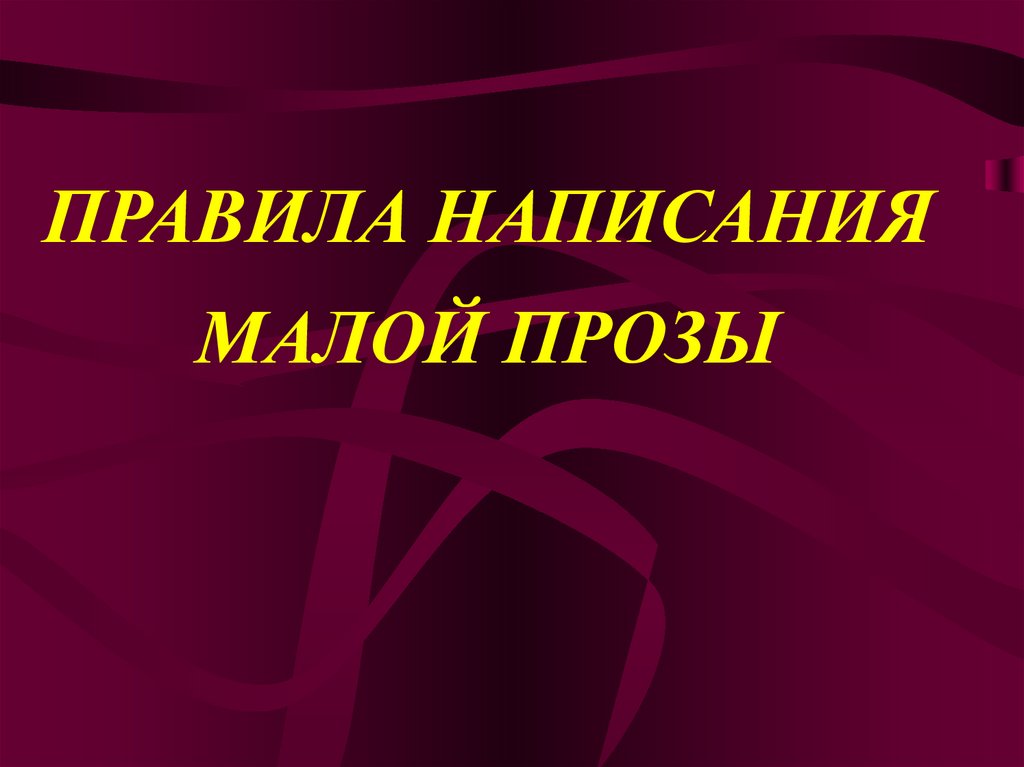 ПРАВИЛА НАПИСАНИЯМАЛОЙ ПРОЗЫ
