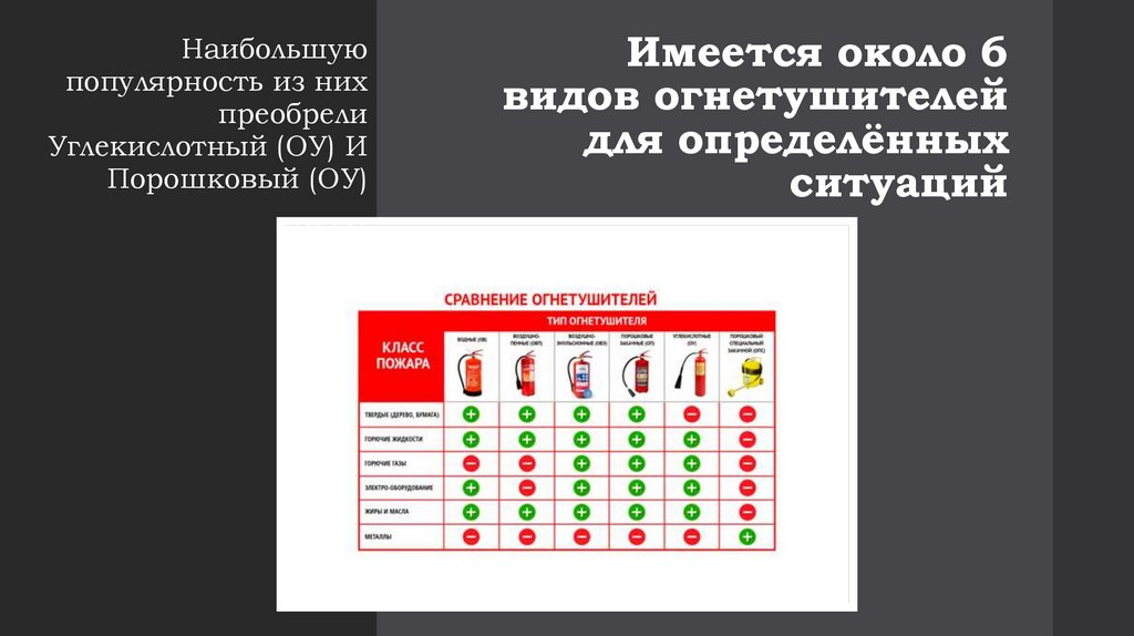 Огнетушители отличаются друг от друга взависимости от ситуации, это применимо к их