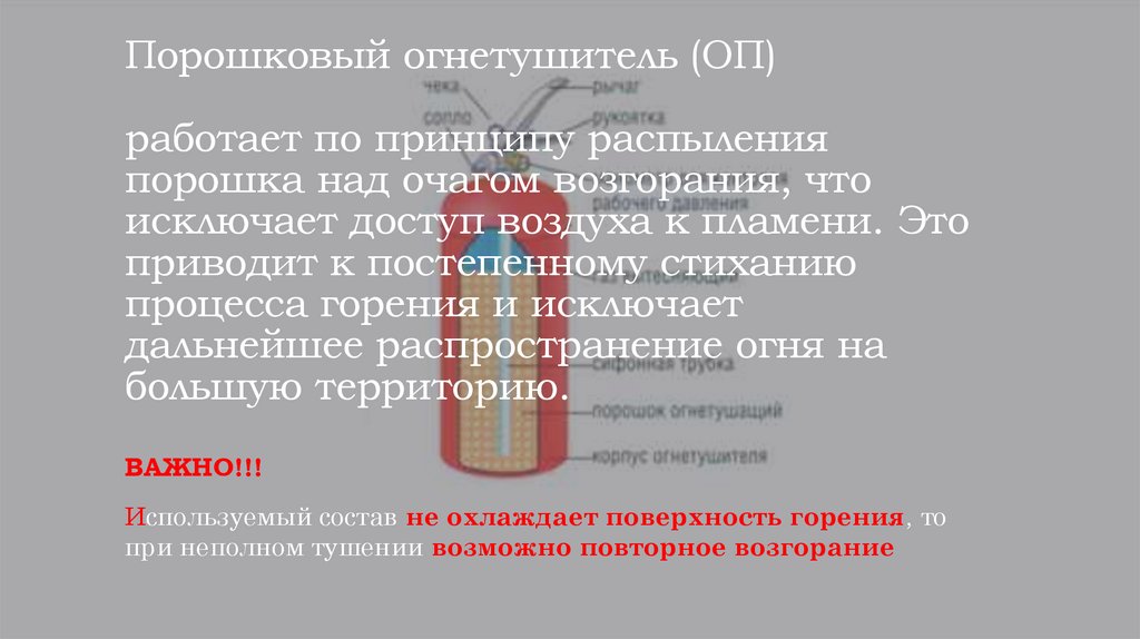 Порошковый огнетушитель (ОП)работает по принципу распыления