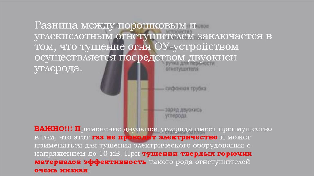 Разница между порошковым иуглекислотным огнетушителем заключается в