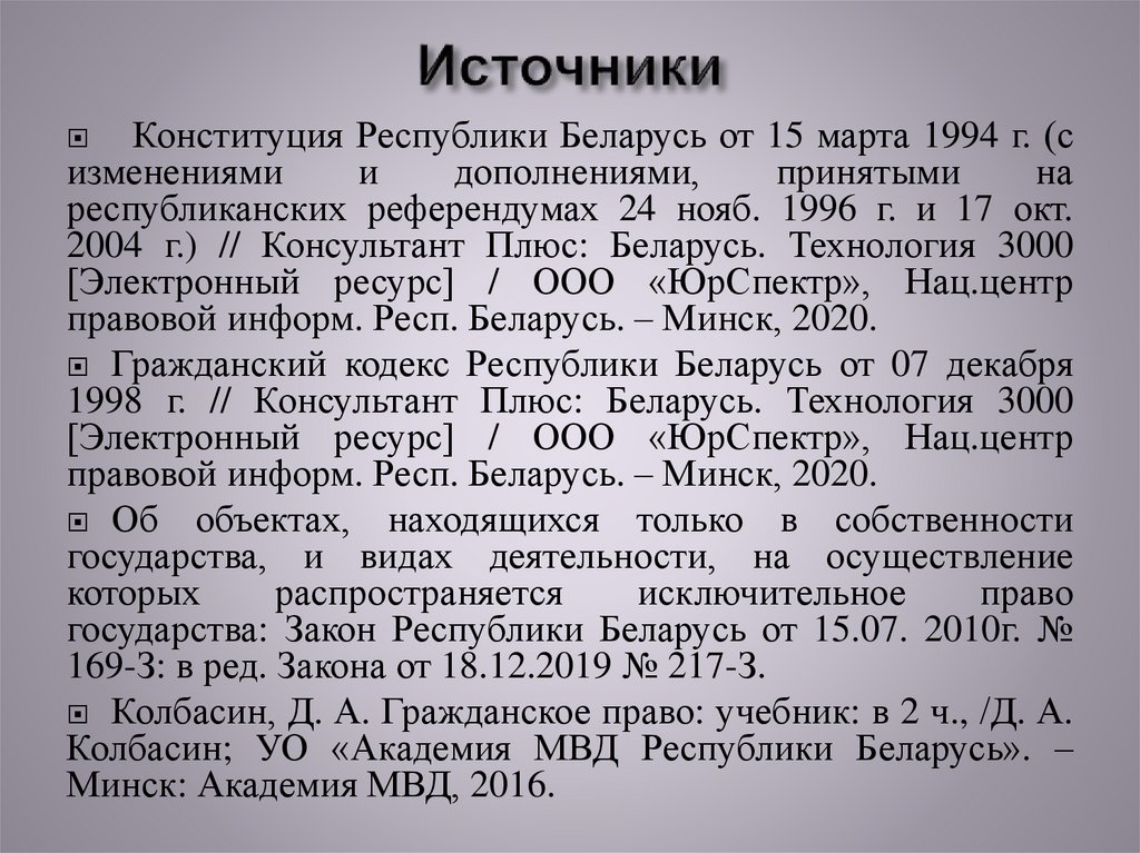 правовой информ. Респ. Беларусь. – Минск, 2020.