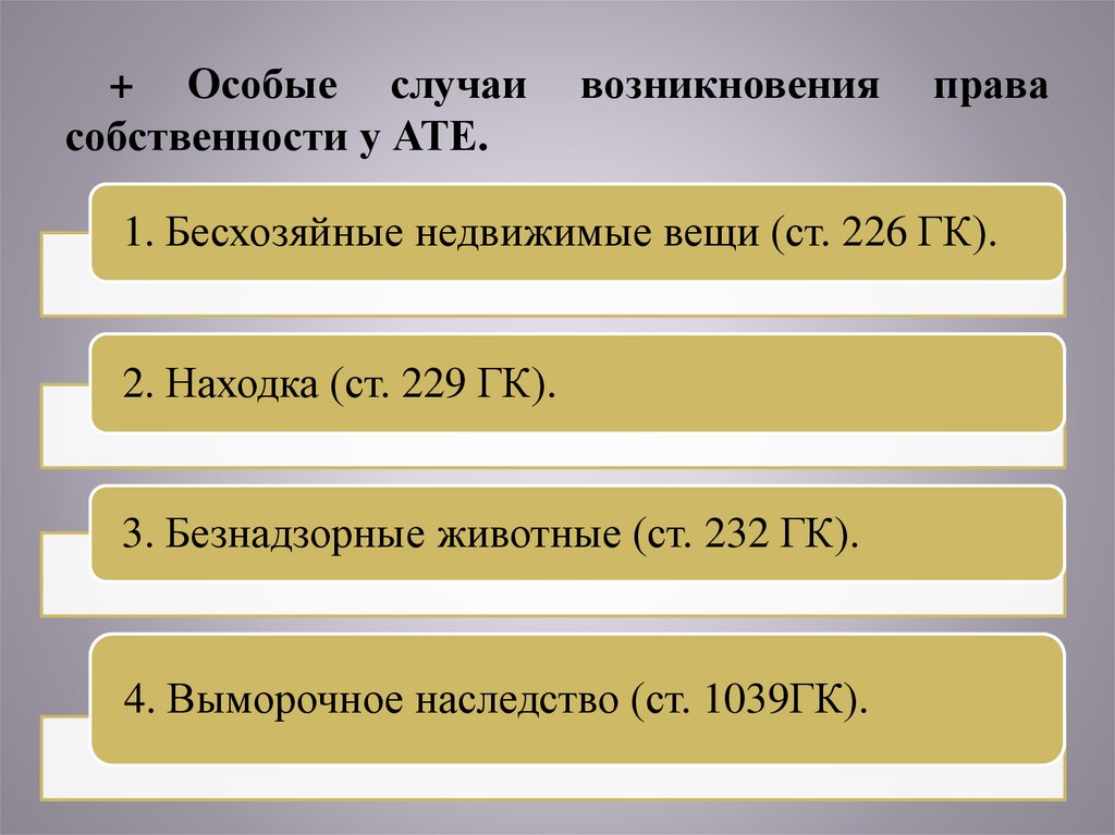1. Бесхозяйные недвижимые вещи (ст. 226 ГК).