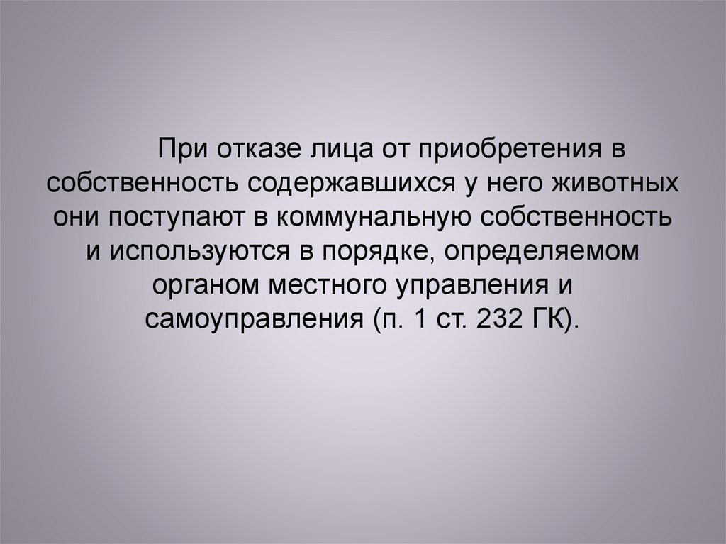 При отказе лица от приобретения всобственность содержавшихся у него животных