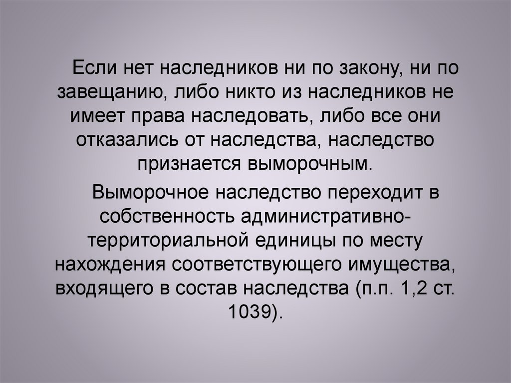 Выморочное наследство переходит в