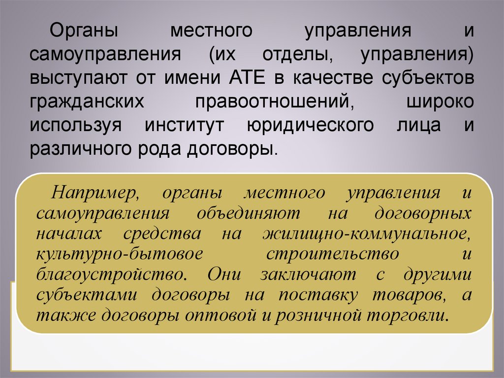 Например, органы местного управления и