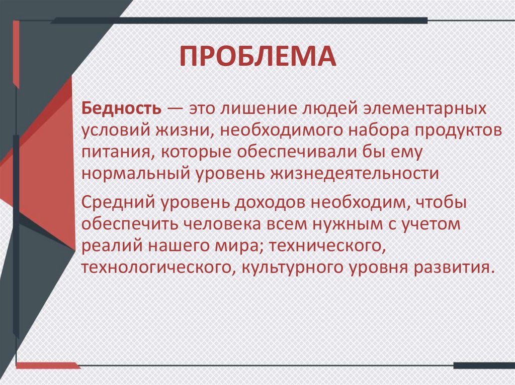 ПРОБЛЕМАБедность — это лишение людей элементарных